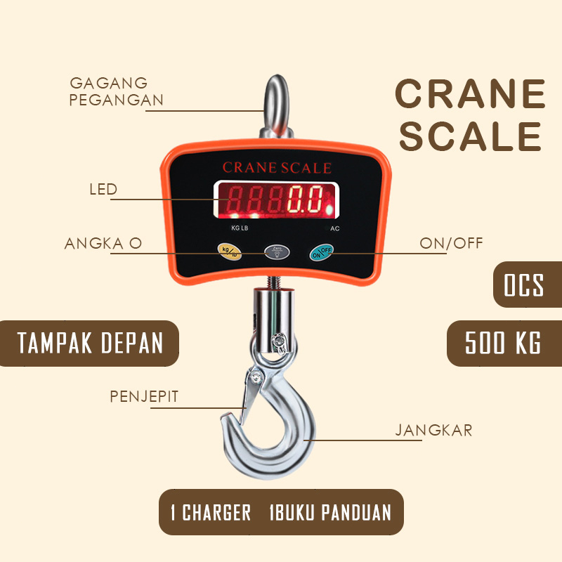 Timbangan Gantung Digital DLE 500Kg Crane Scale 500kg Elektronik LED Orange LCD Smart Hanging Crane Scale 500Kg Garansi