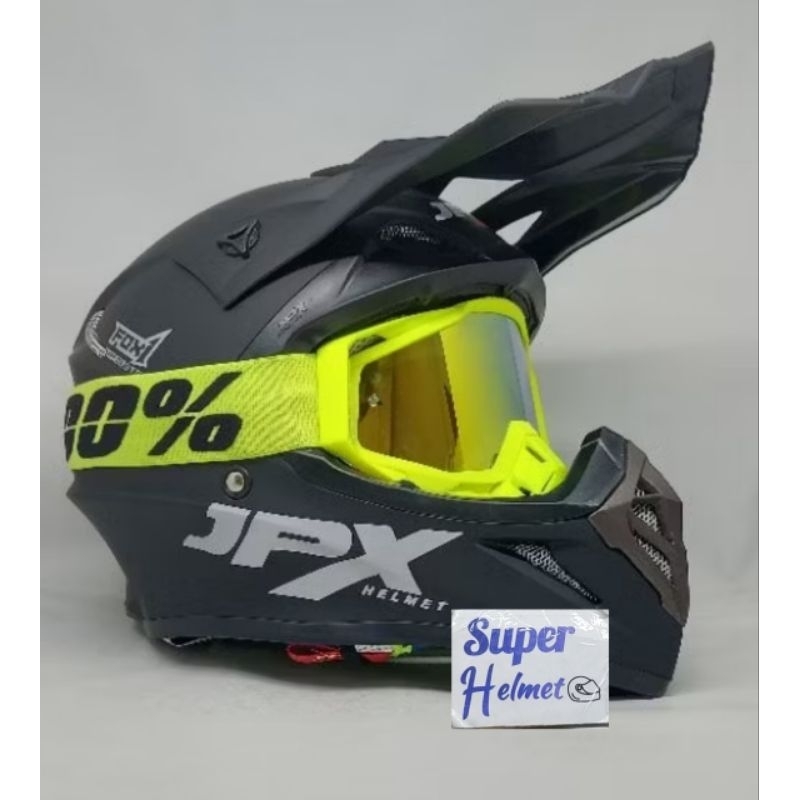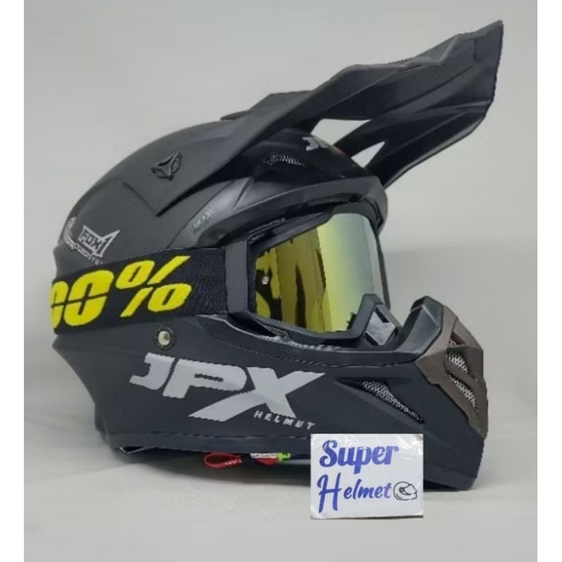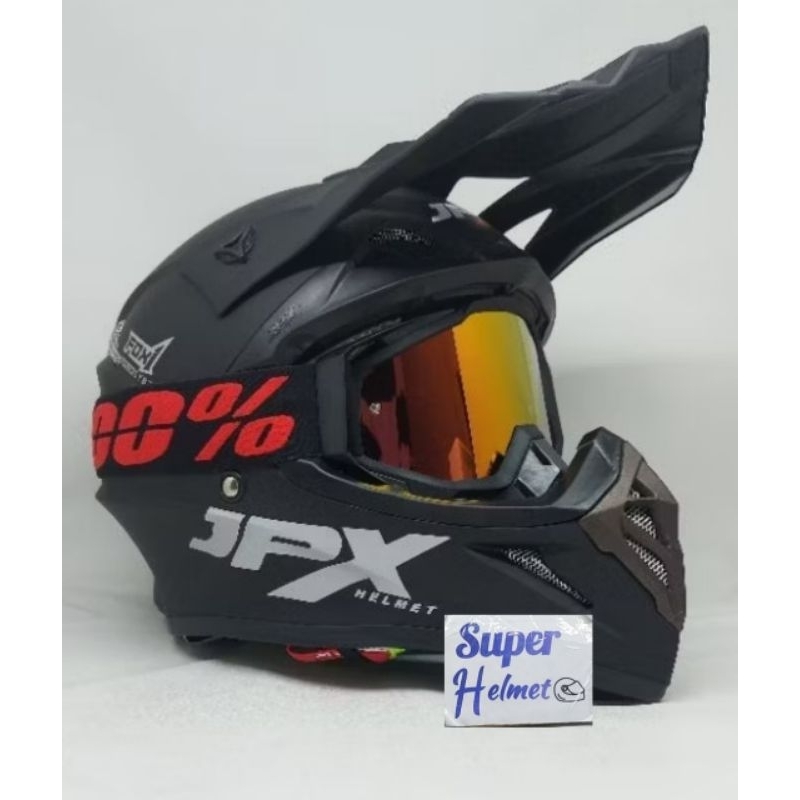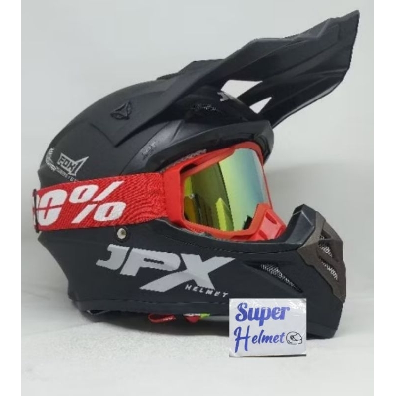 Helm cross JPX Cross Fox1 solid BLACK DOFF dan GOGGLE trail 100%(ongkir 2kg) goggle saja