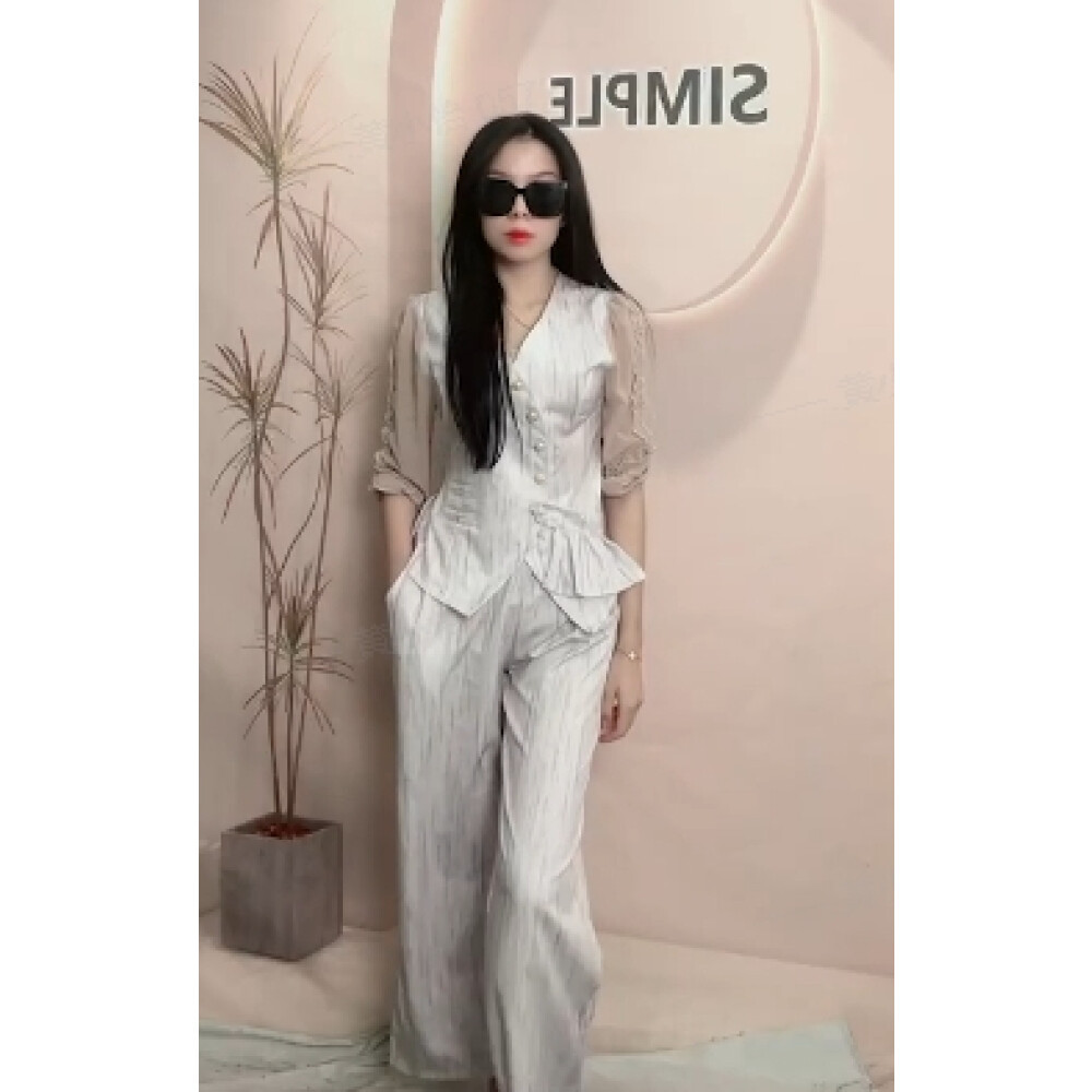 FADFAD Setelan kelas atas dua potong dengan lengan panjang dan model celana kaki wanita