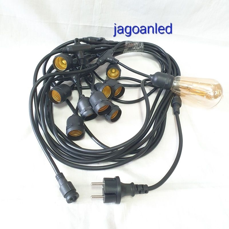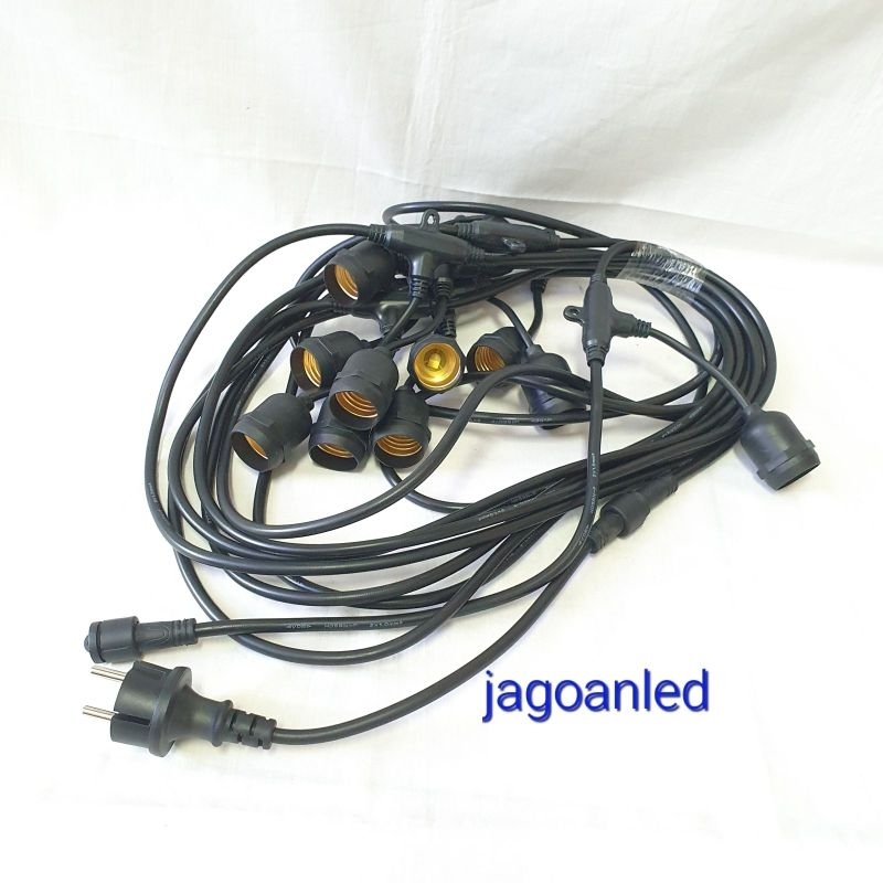 Kabel fitting lampu cafe gantung E27 10m 10 fitting dekorasi outdoor