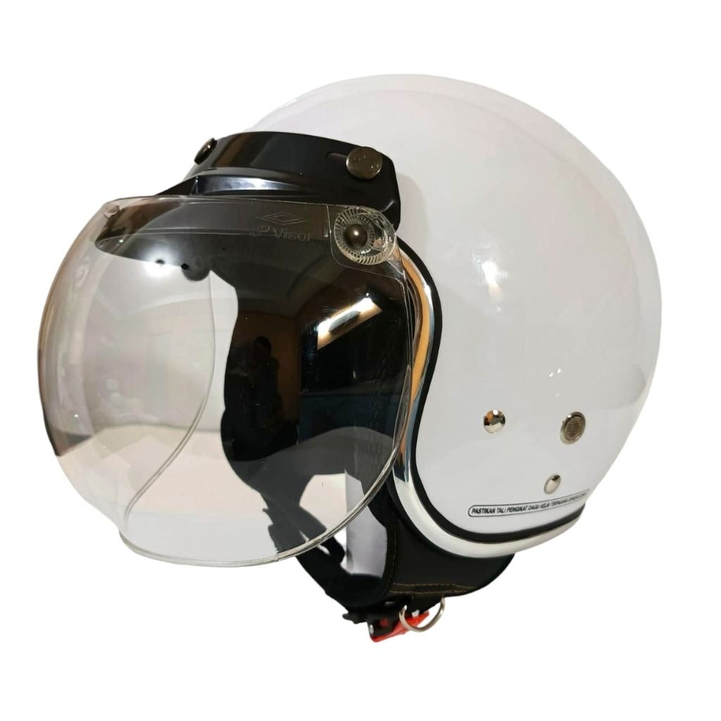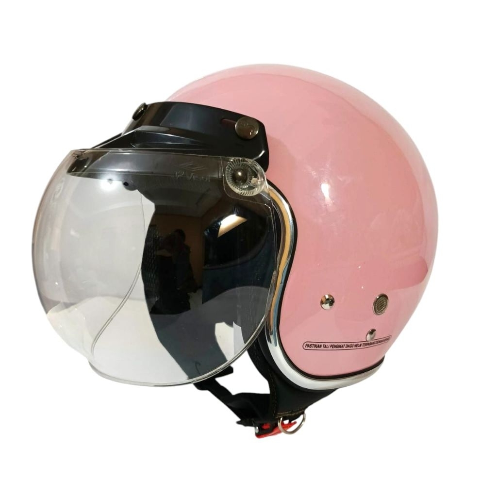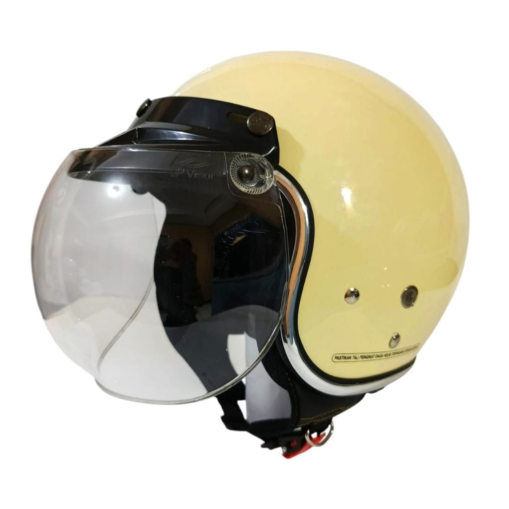 Helm Bogo Retro Kece Pria Wanita Dewasa BOGO List Chrome Full Leher Kaca Cembung Bening