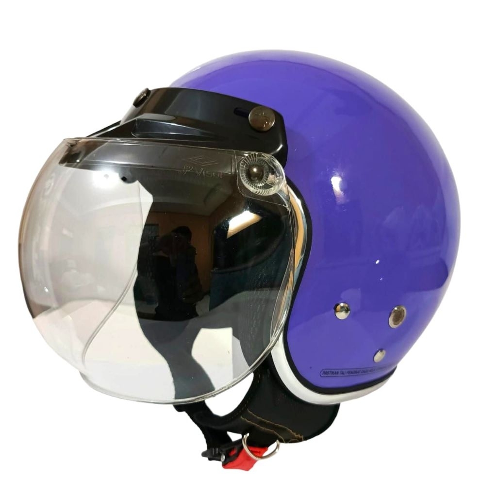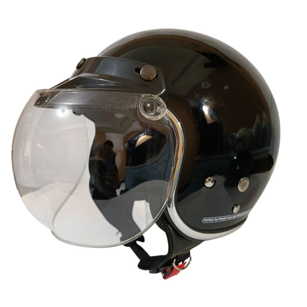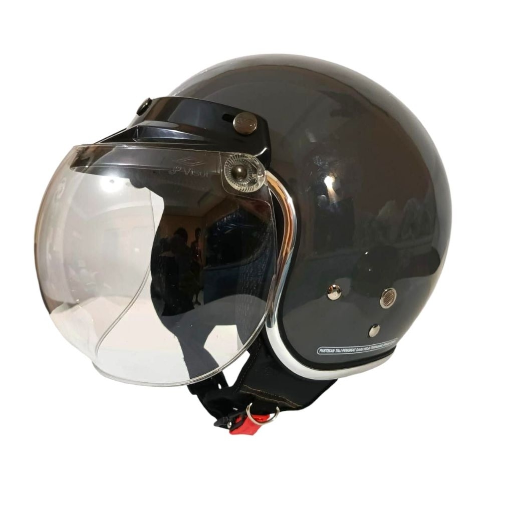 Helm Bogo Retro Kece Pria Wanita Dewasa BOGO List Chrome Full Leher Kaca Cembung Bening