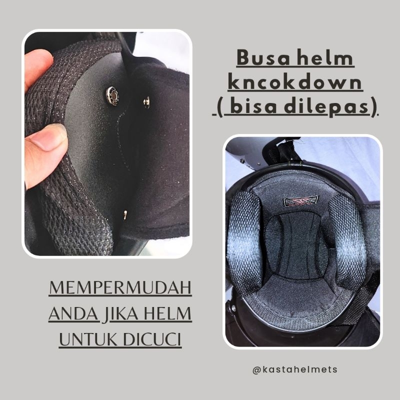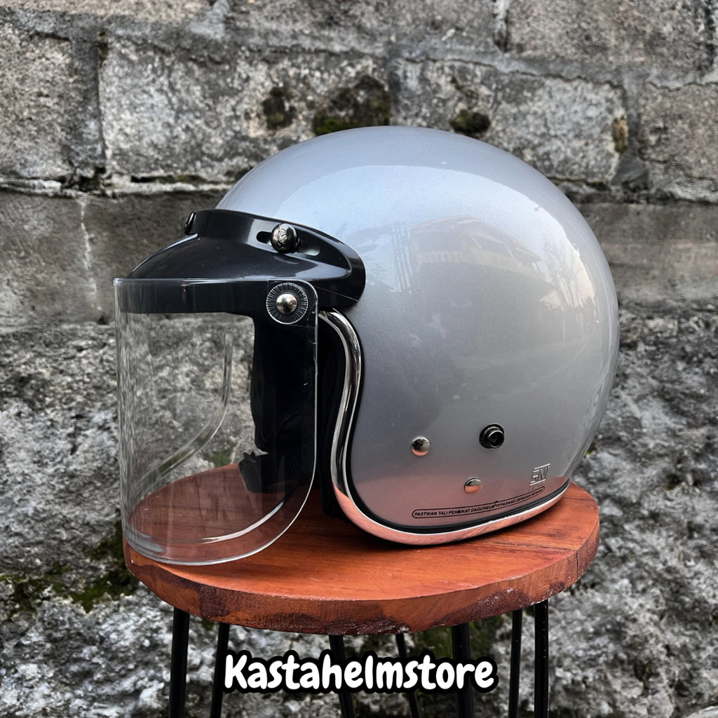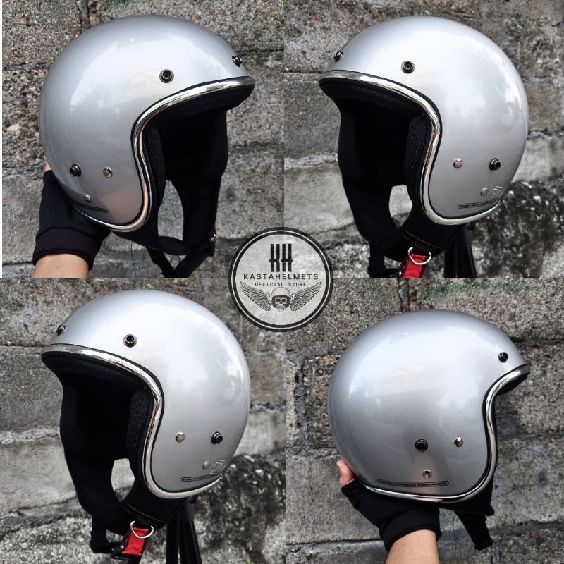 HELM BOGO DEWASA PRIA WANITA FULL LEHER SNI ABS RETRO LIST CROME + KACA | kastahelmstore