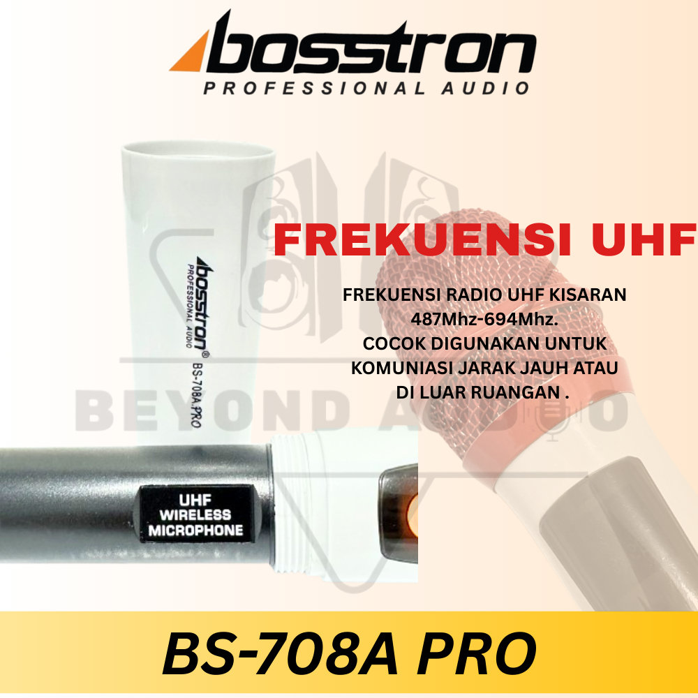 Bosstron Mic Microphone Mikrofon Wireless BS-708A PRO Merah Putih Mic Karaoke