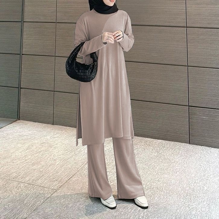 [Star] One Set Wanita Kekinian Korea Celana Tunik Bahan Snowy Knit Jumbo Motif Polos Simple Setelan Wanita Kekinian