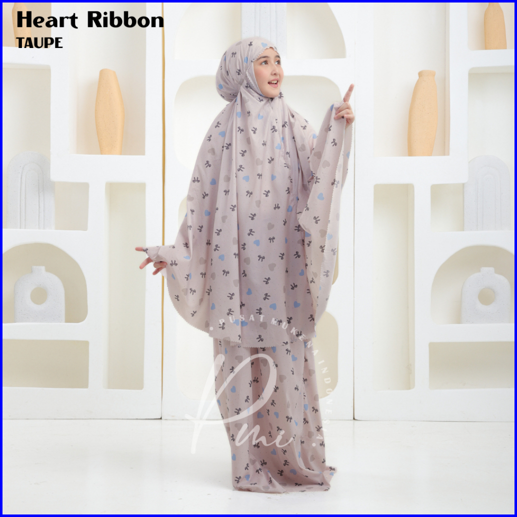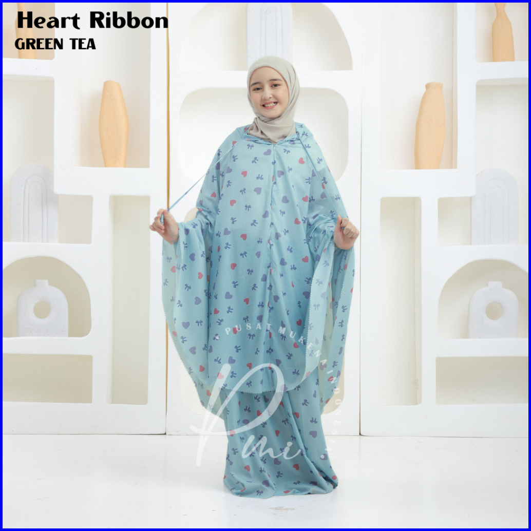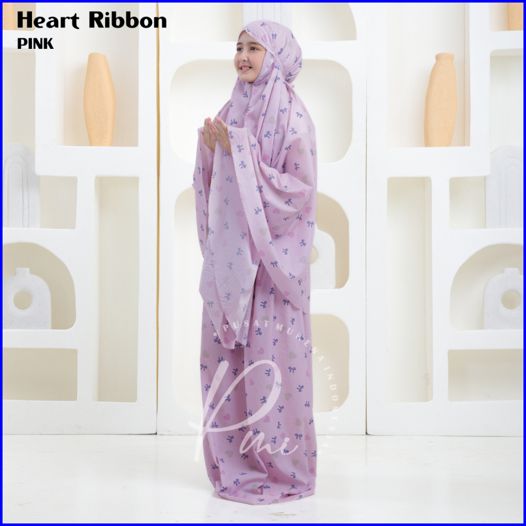 Pusat Mukena Indonesia - Mukena Travel Anak Mini Parasut Korea Laser Cut 2in1 Motif - Heart Ribbon