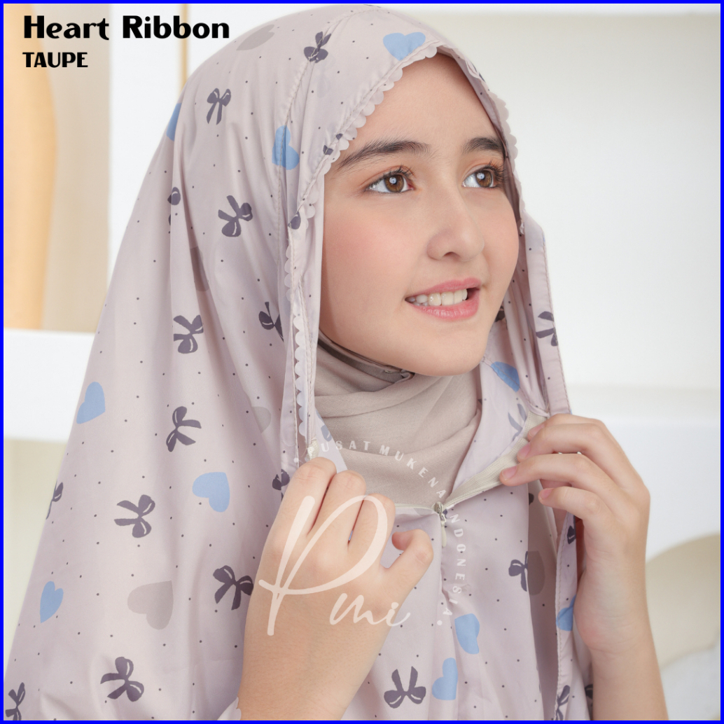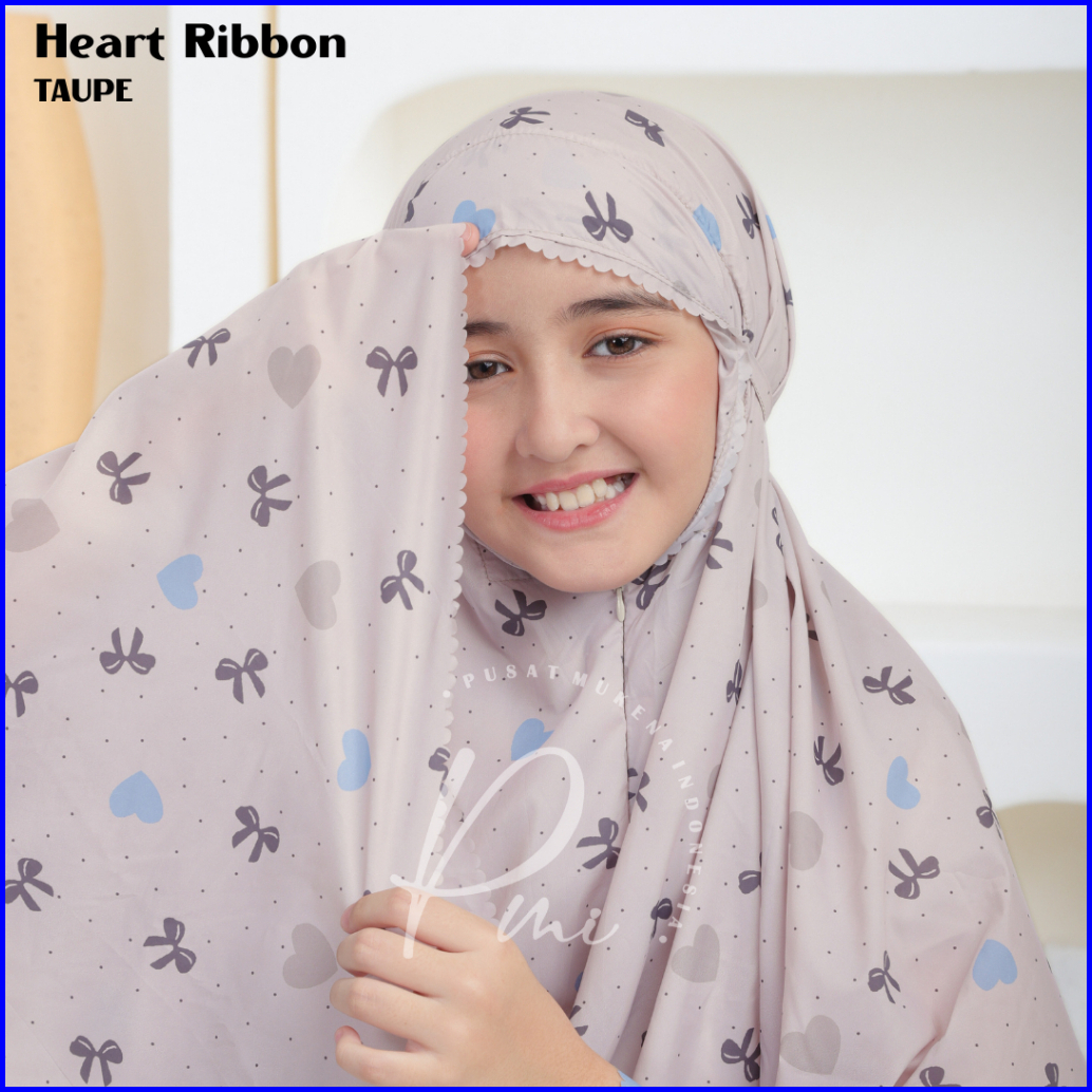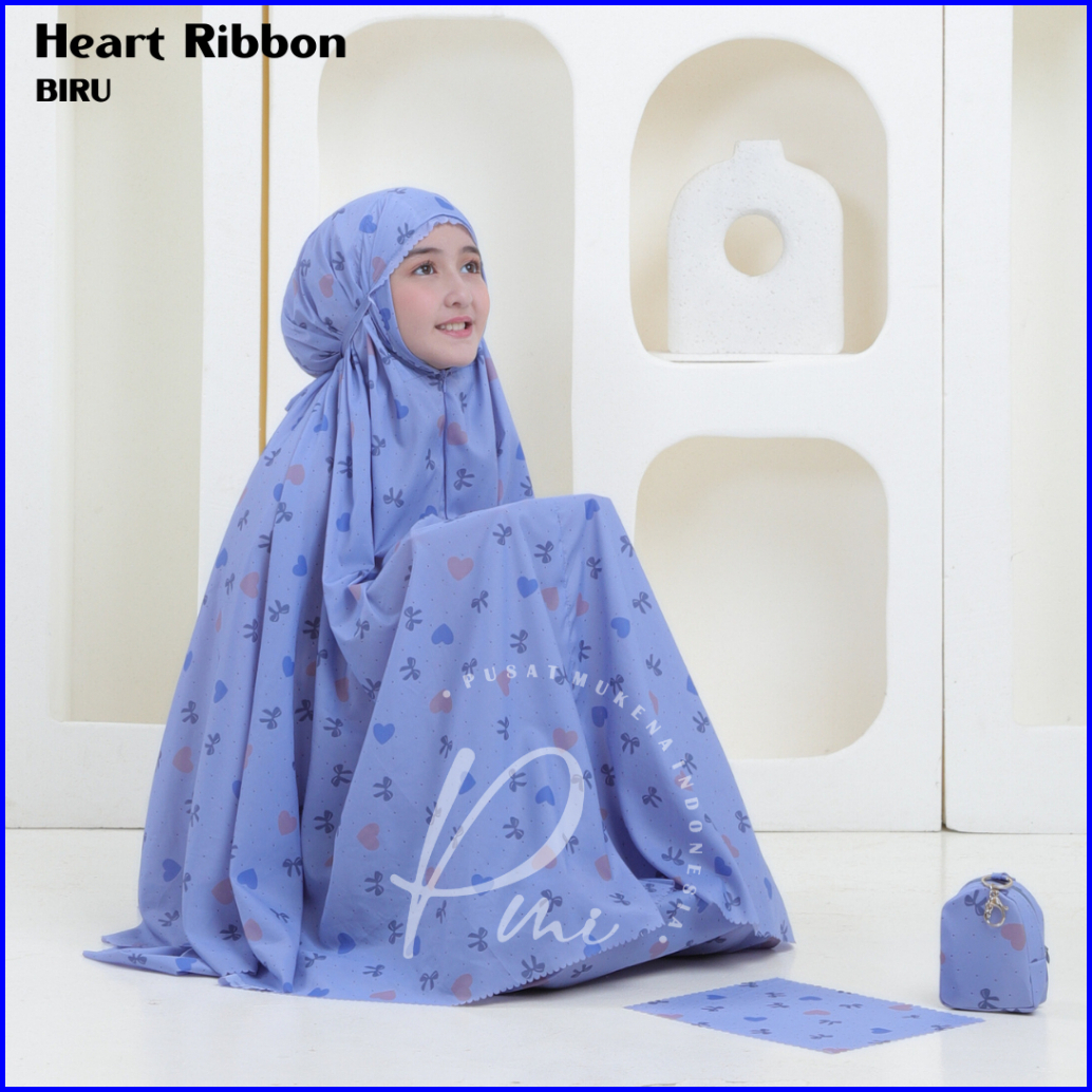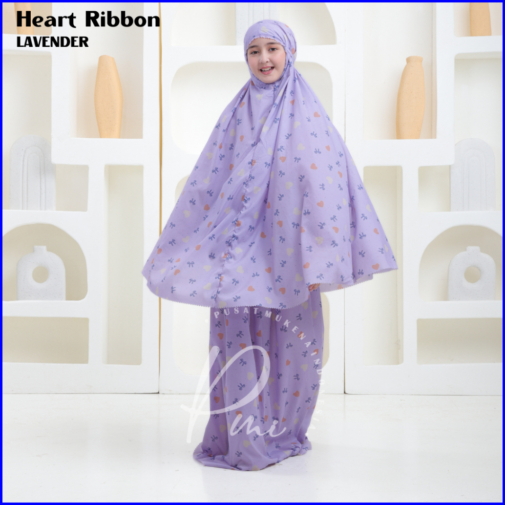 Pusat Mukena Indonesia - Mukena Travel Anak Mini Parasut Korea Laser Cut 2in1 Motif - Heart Ribbon