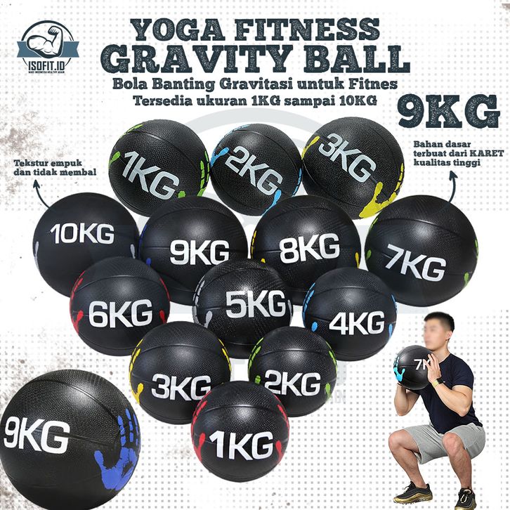 Isofit.id Yoga Fitness9ravity Gym Ball 9KG / Bola Gym / Bola Yoga bahan Karet tidak membal