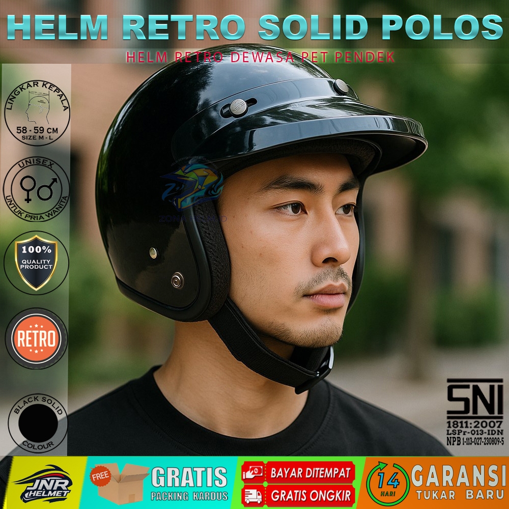 JNR Original Helm Bogo Retro Solid Polos SNI Remaja Dewasa Ukuran M L Pet Pendek Warna Awet