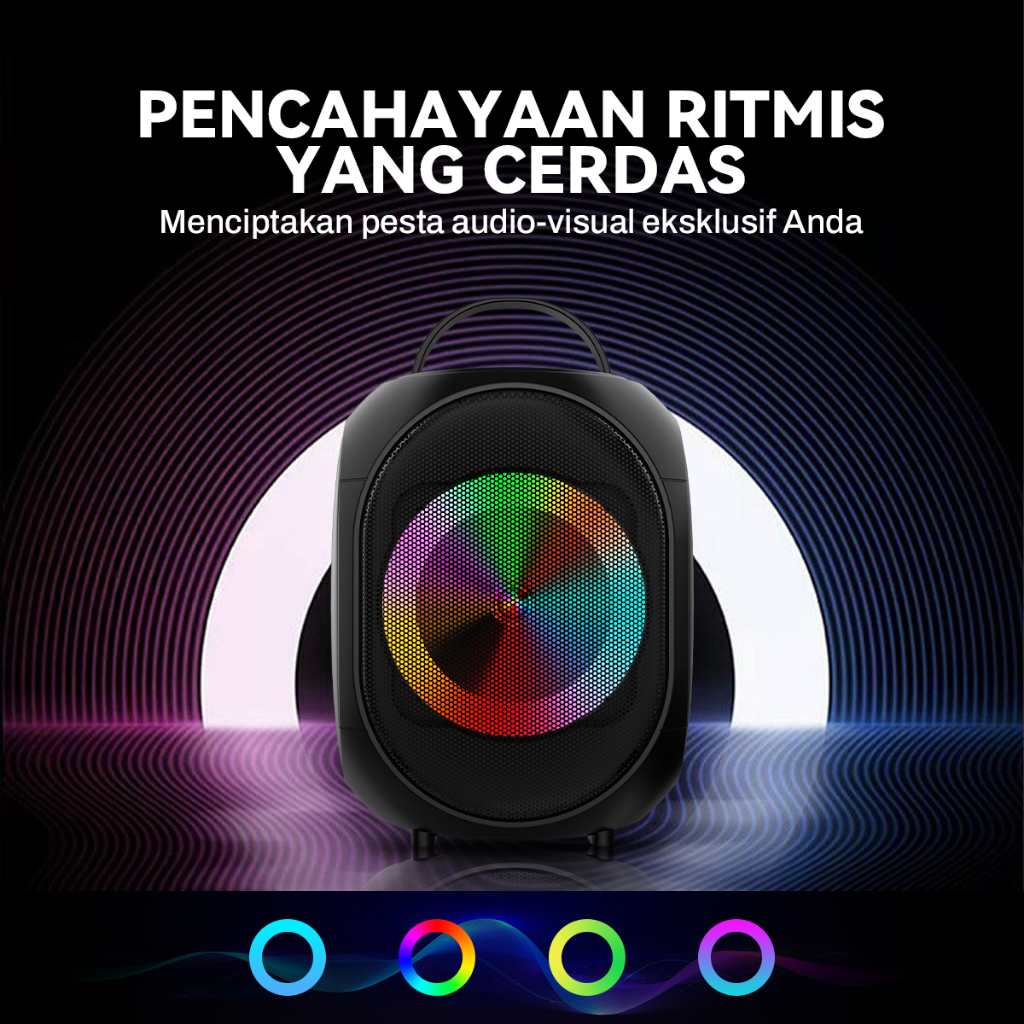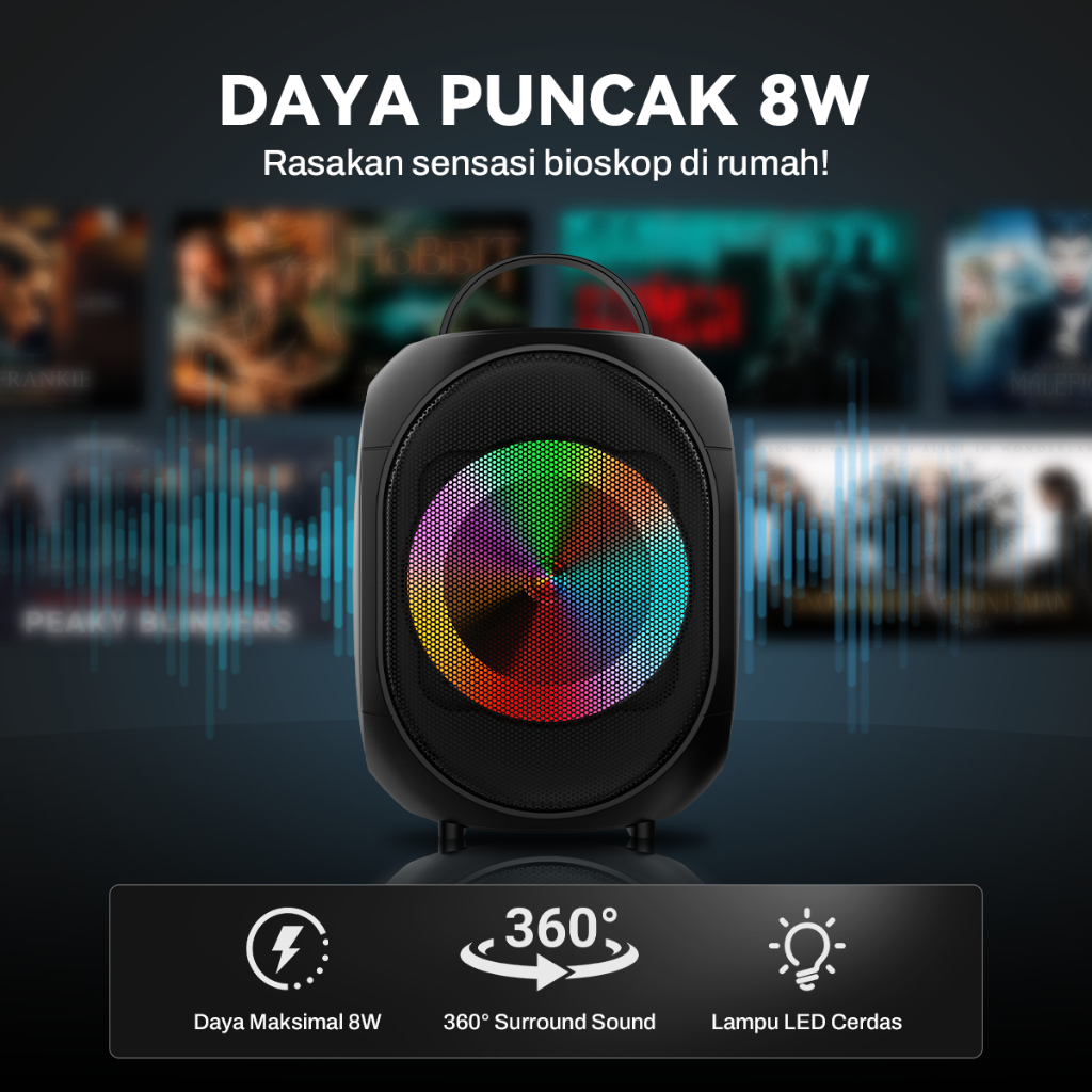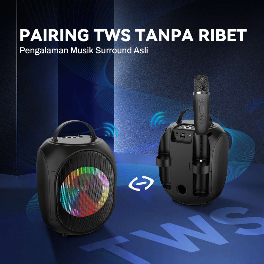 peaker Karaoke Bluetooth 5.3 Portable 8W - TWS, 2 Mic Wireless, LED RGB, Bass 360°, Baterai 1800mAh
