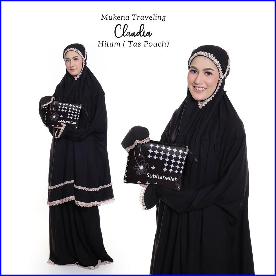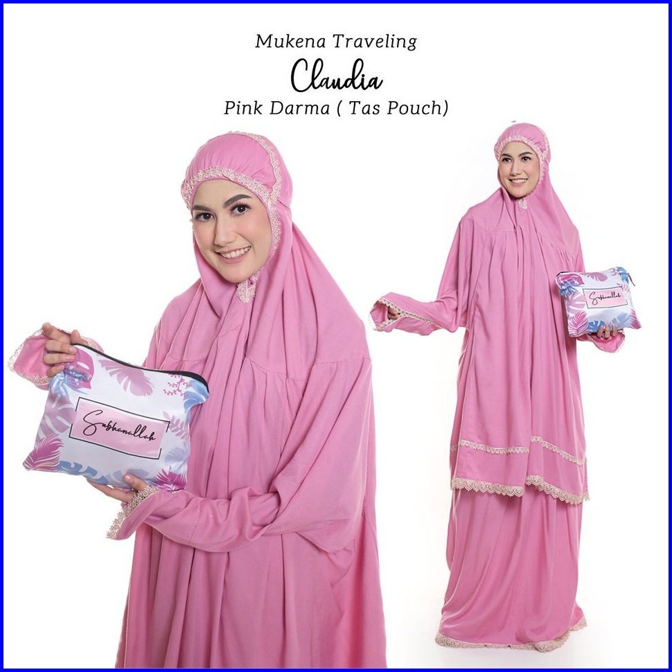 Pusat Mukena Indonesia - Mukena Dewasa Rayon Bali Travelling Berlengan Claudia Tas Pouch