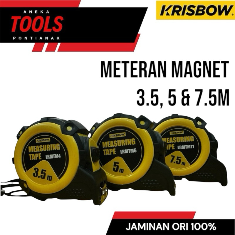 Krisbow Tape Measure / Meteran Magnet 3.5 & 5 m Elastis Pengunci Manual DL900XB /Alat Perkakas / Meteran Tukang Bangunan