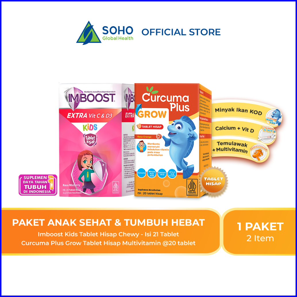 Paket Anak Sehat Dan Tumbuh Hebat Imboost Kids Tablet Hisap Chewy 1 Botol Curcuma Plus Grow Tablet Hisap 1 Botol