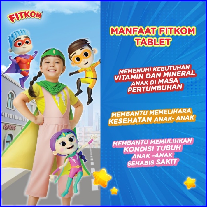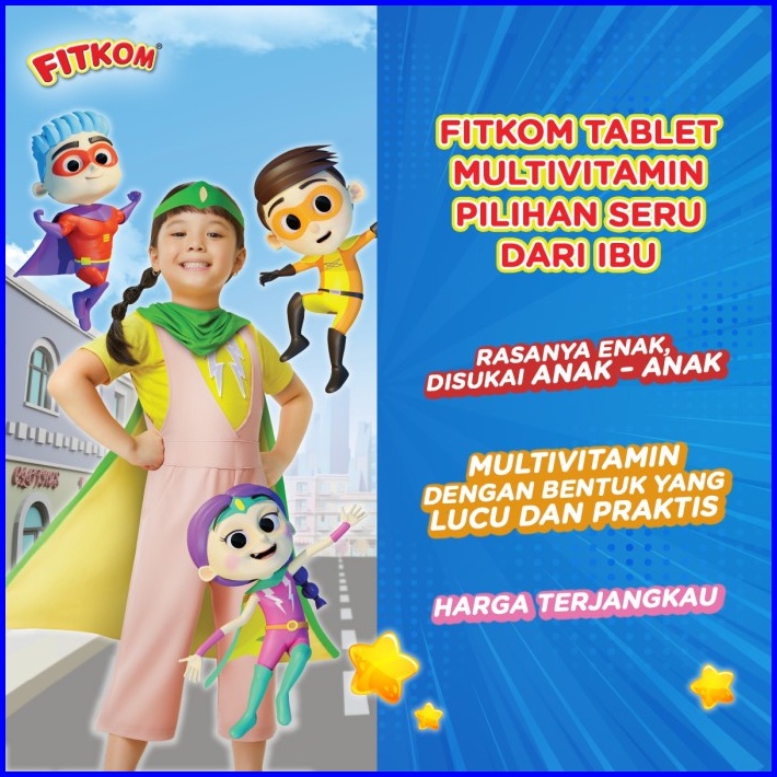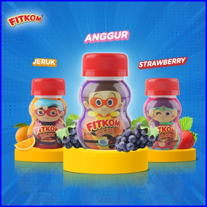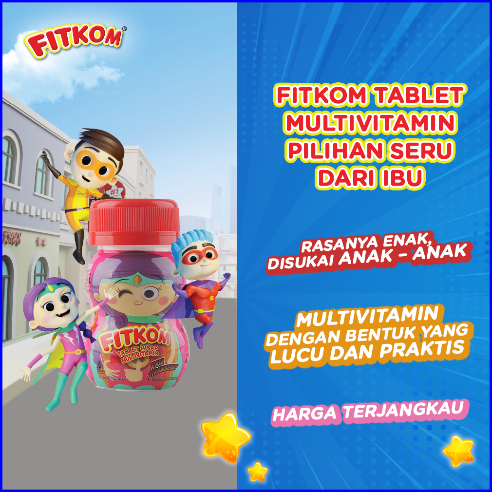 Fitkom Tablet Hisap Multivitamin Anak Rasa Stroberi Botol 21 Tablet