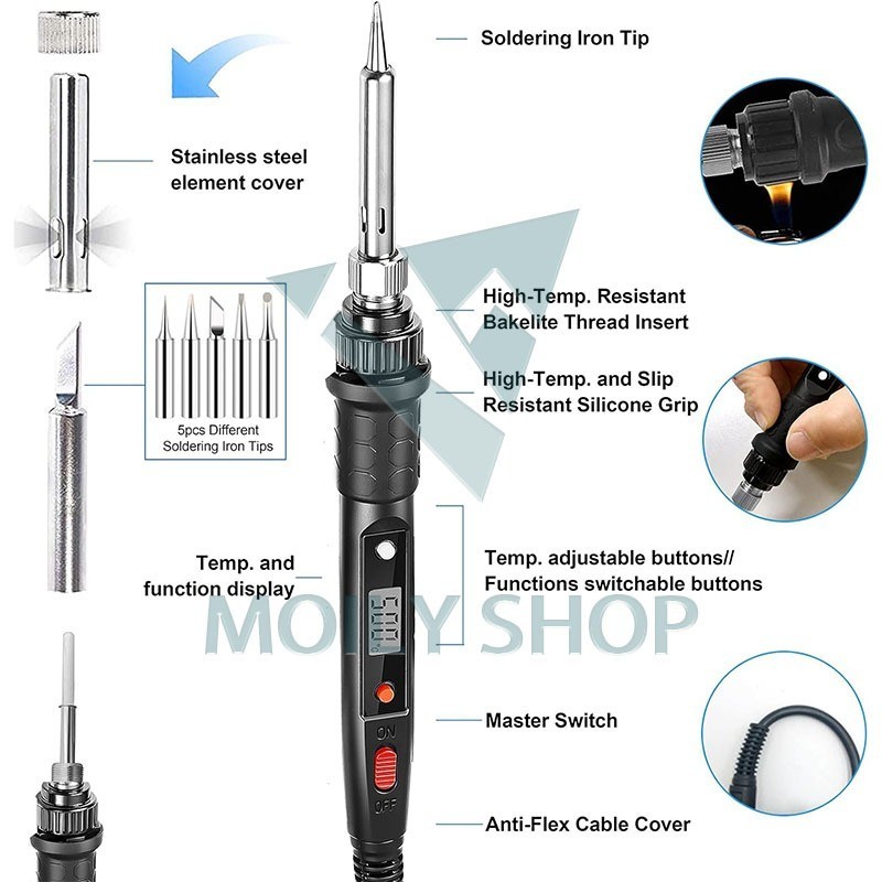 908V 80W - Solder Digital 80W Tertinggi 500℃ Solder Digital Iron Adjustable Temperature