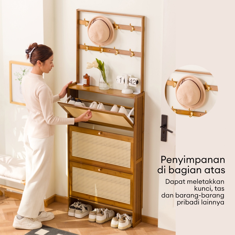 LEMARI SEPATU RAK SEPATU SERBAGUNA RAK SEPATU LIPAT KAYU SEPATU GANTUNGAN BAJU BOX SEPATU DINDING