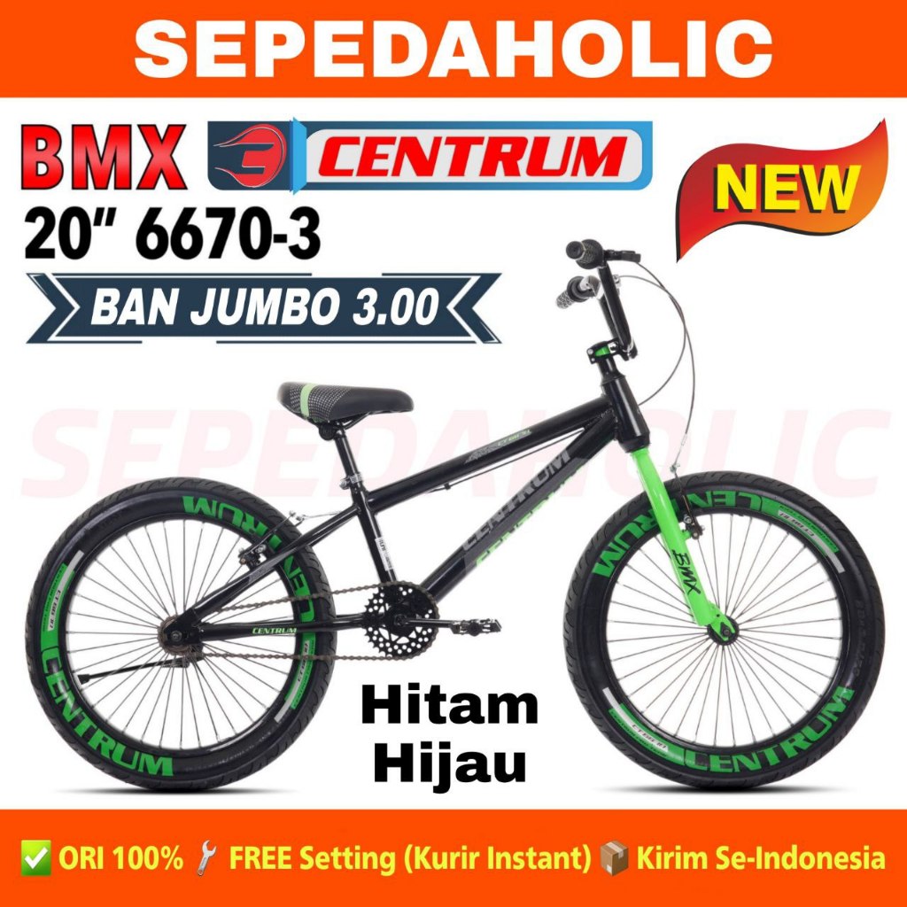 Sepeda Anak Laki BMX CENTRUM 6670-3 6670-1 Ukuran 20 Inch Ban 2.4 & Jumbo 3.0 Warna Usia 8-12 Tahun