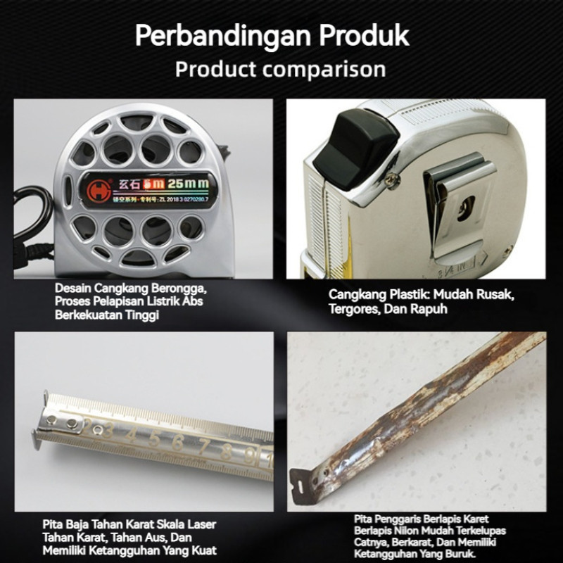 7.5m/3m/5m Alat Ukur Meteran Roll ABS Panjang Stainless Tebal Industri Presisi Tinggi Bahan Stainless Steel Tebal Tahan