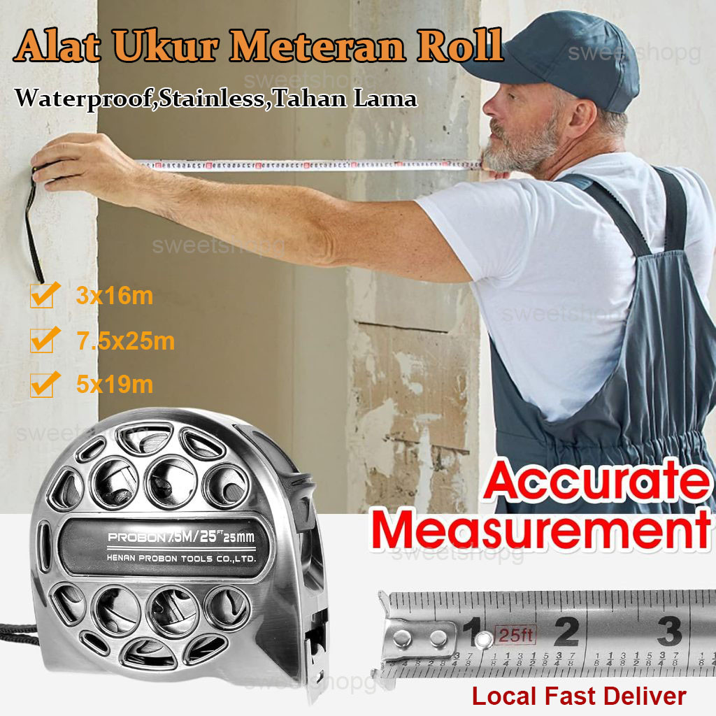 Alat Ukur Meteran Roll (ABS) / Meteran Pengukur Kelas Industri Presisi Tinggi Meteran Besi 3m/5m/7.5m Pita Pengukur Baja