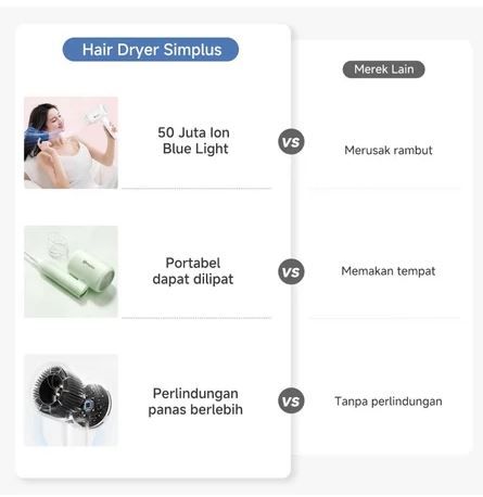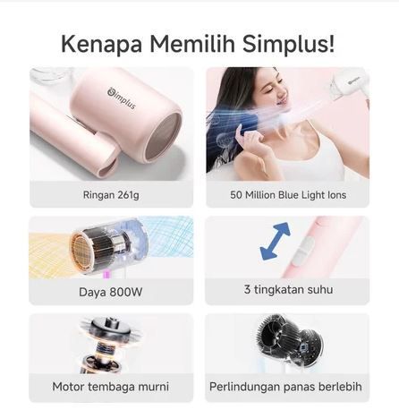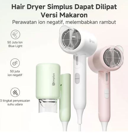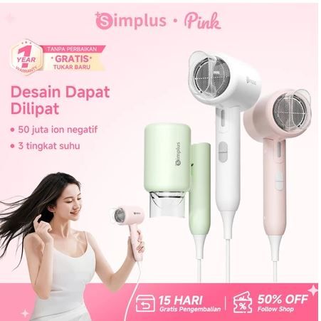 Simplus Pink Hair Dryer Foldable Dapat & Ion Negatif & Strong Wind & Low Watt