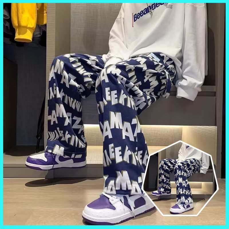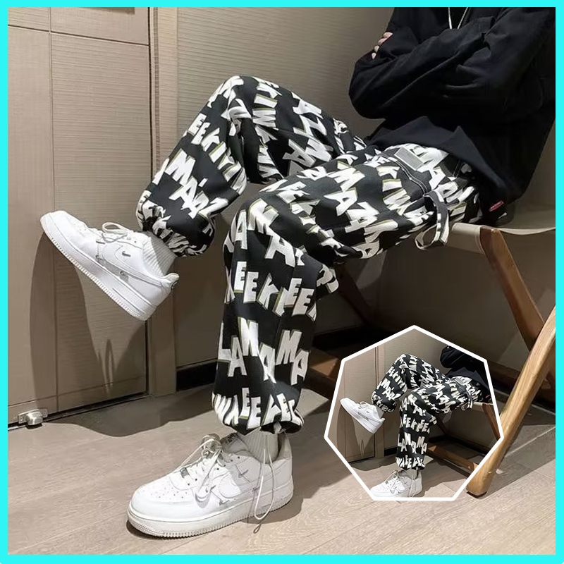 [] Celana panjang pria/Celana kasual pria/Celana/celana pinggang karet/Celana hitam/Celana SNSB/celana y2k motif