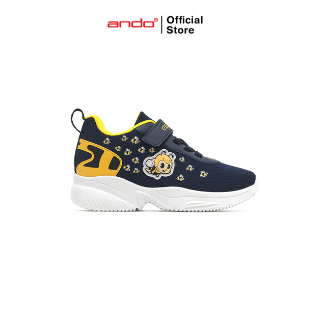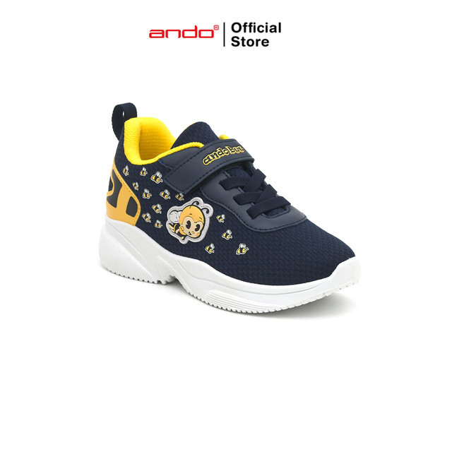 Ando Sepatu Sneakers Bee V Anak - Biru Tua/Kuning
