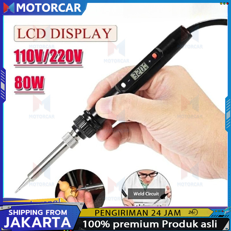Solder Elektrik Adjustable Temperature LCD Display 80W 220V / solder listrik 1 set dan timah promo murah komplit 80 watt