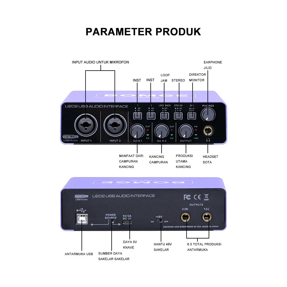NEW ORIGINAL BOMGE U202P USB Audio Interface with Mic Preamplifier XLR/TSR/TS Ports,48V,32-Bit/192kHz U 202 P U202 P