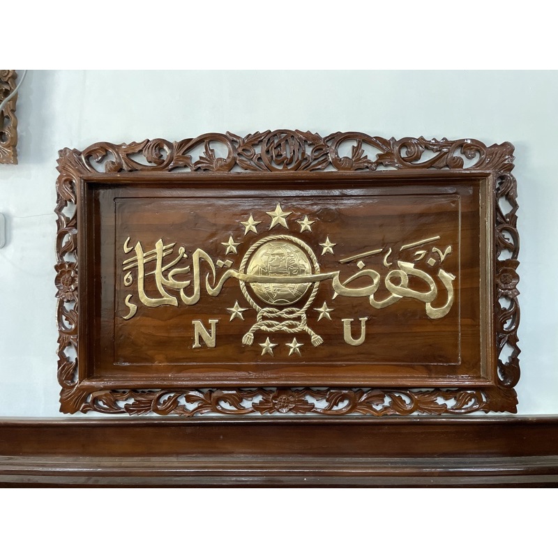 Kaligrafi NU Ukiran Jati Jepara 100x60 | pajangan kaligrafi islami | hiasan dinding ruang tamu 3d