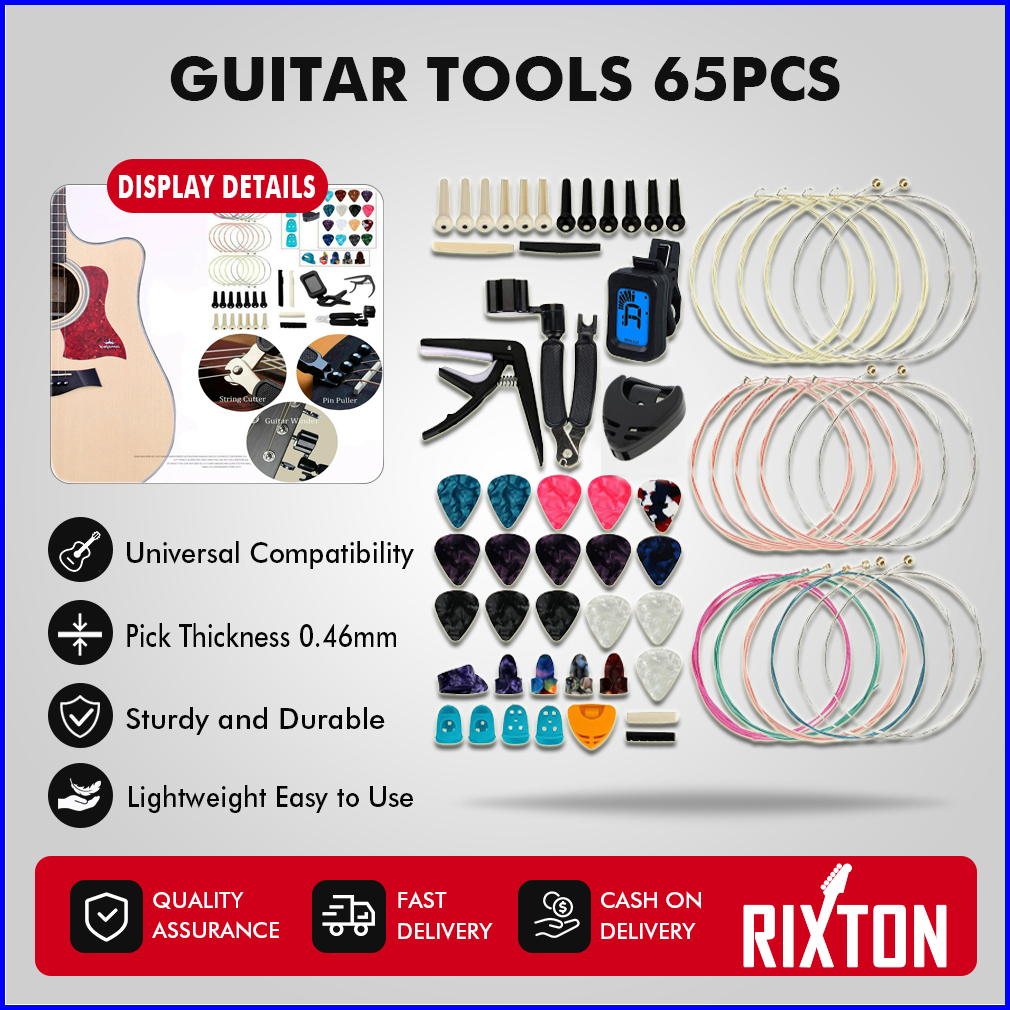 Rixton Guitar Tool 65pcs Set Changing Kit Strings Pick Capo Winder Cutter Tuner Accessories Kit