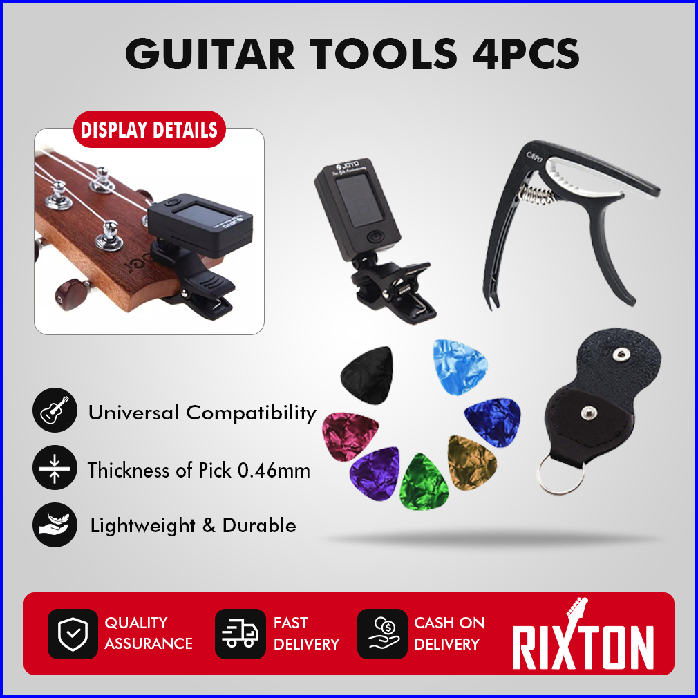 Rixton Guitar Tool 4 Pcs Set Alat Kit Tuner Gitar Capo Tas Picks 7 Seluloid Picks Tuning Capo Guitarra Aksesoris Suku Ca