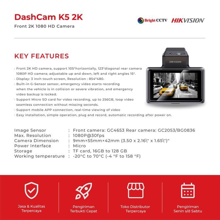 HIKVISION K5 1440P 2K CCTV DASHCAM KAMERA DASHBOARD PEREKAM VIDEO MOBIL