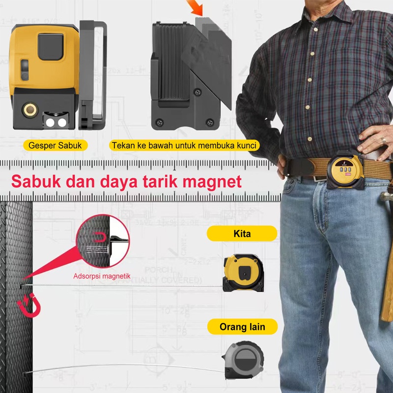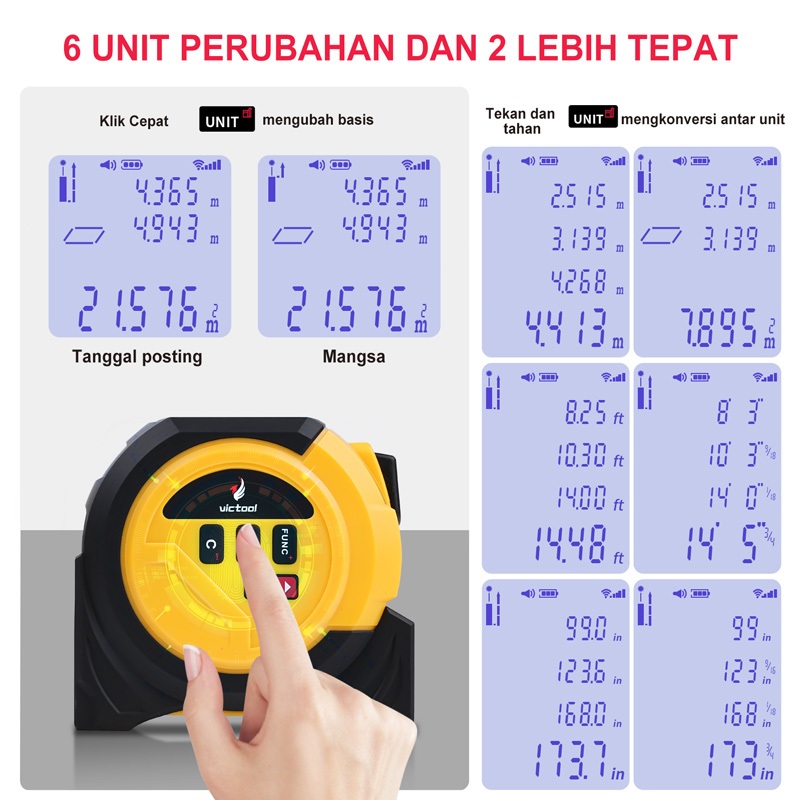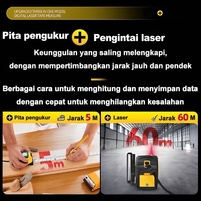 Convenyy Portabel meteran laser digital 3IN1 pita pengukur meteran digital dengan presisi tinggi Meteran Laser Pita Baja