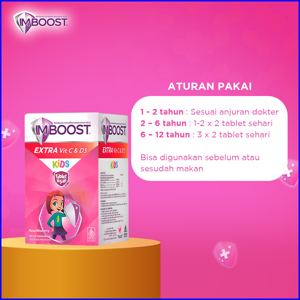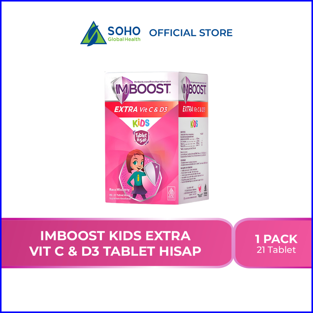 Imboost Kids Extra Vit C D3 Tablet Hisap Suplemen Daya Tahan Tubuh Anak 1 Botol - 21 Tablet