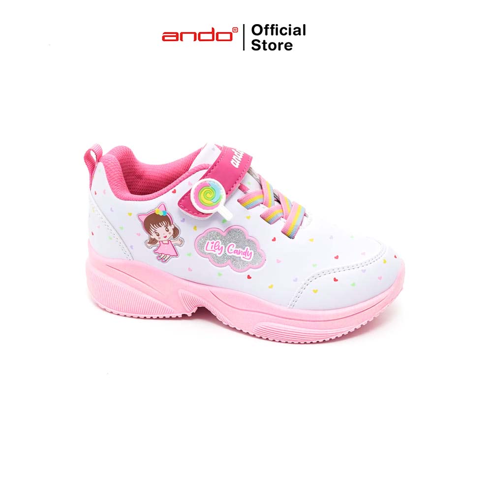 Ando Sepatu Sneakers Lily Candy V Anak - Putih/Merah Jambu/Merah Muda