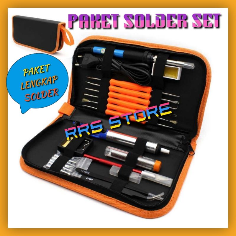 Satu Paket lengkat solder listrik set GEYOTAR Peralatan Solder Iron Kit 60W 220V - SIK-003 Taffware Solder Iron Adjustab