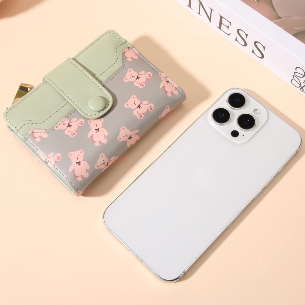 MKS Dompet Wanita Dompet Lipat Kecil Dompet Kartu Uang Mini Beruang Tas Dompet Koin Model Teddy Bear