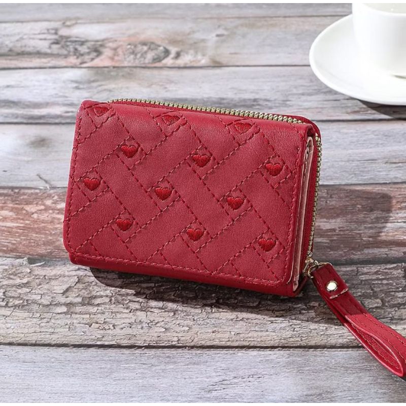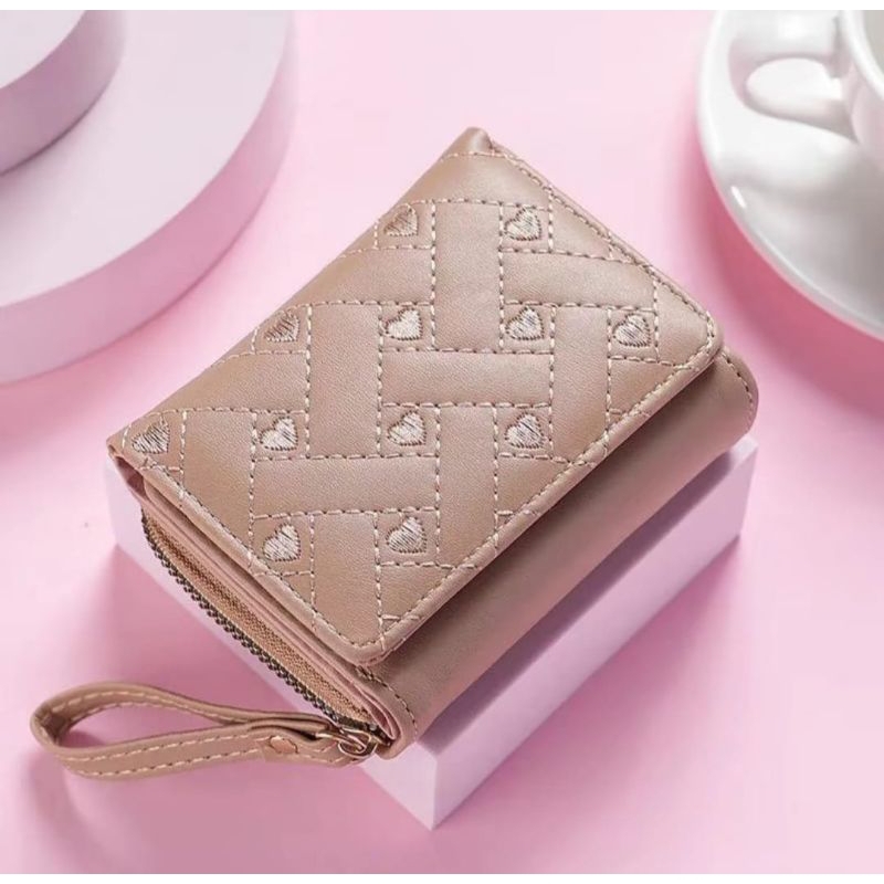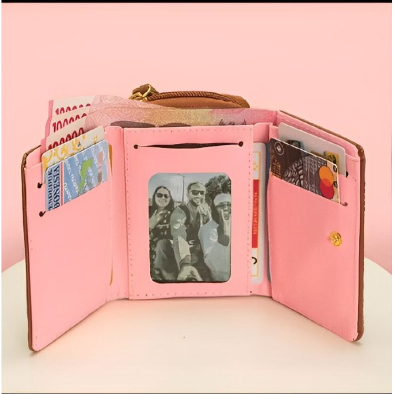 Dompet Wanita Lipat aurora Motif Bunga Bordir Terbaru Premium Lucu Kartu Mini Kecil Walet
