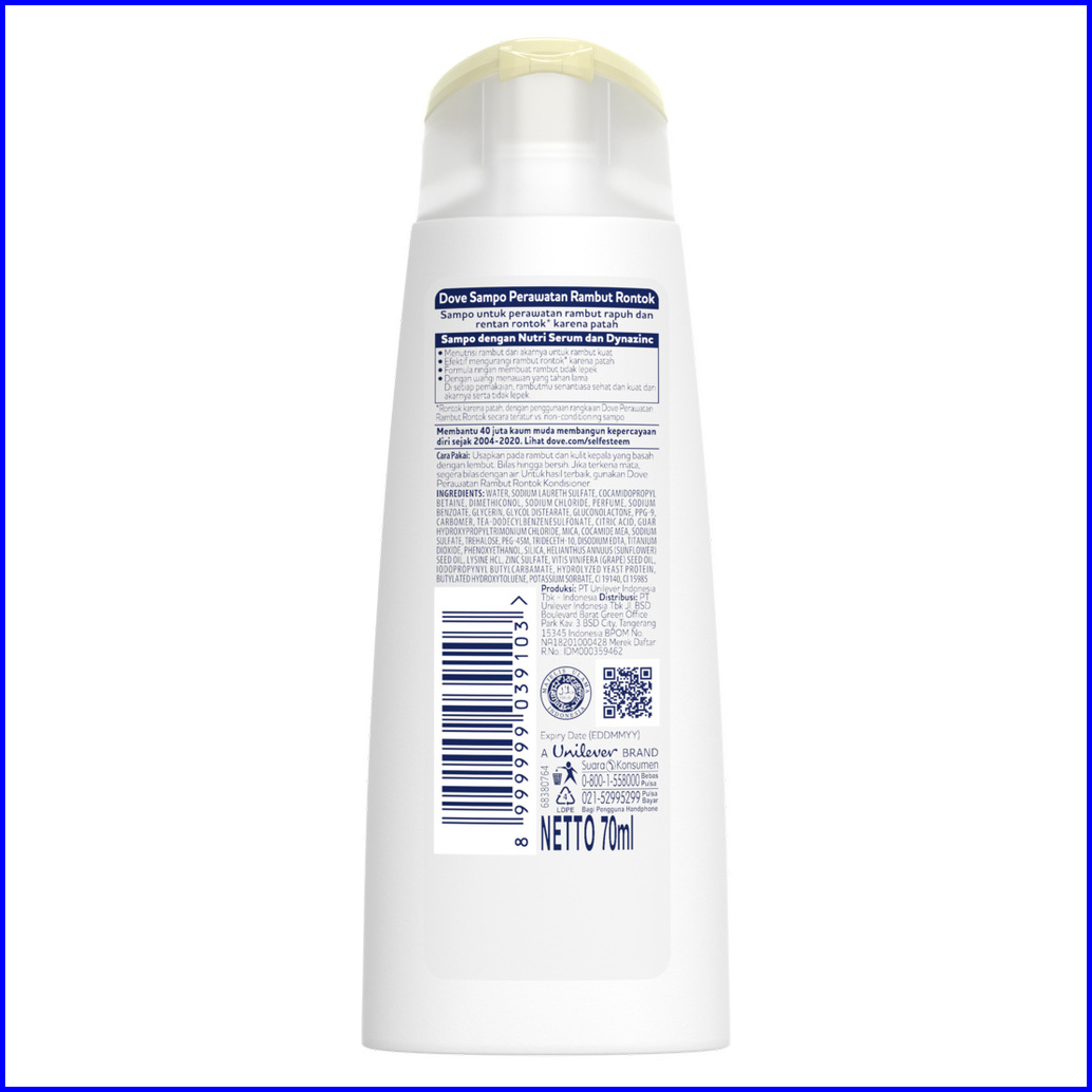 Dove Shampoo Perawatan Rambut Rontok Berkurang 99 Dengan Nutri Serum Dan Dynazinc 70ml