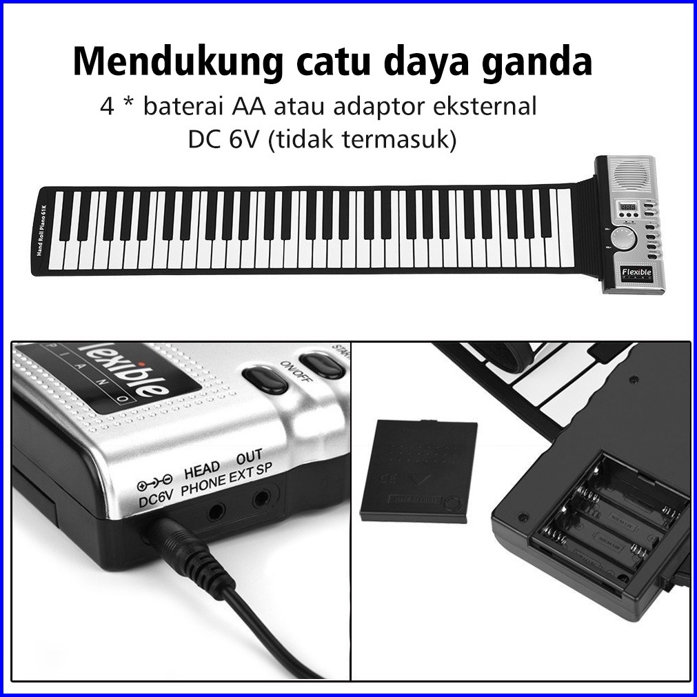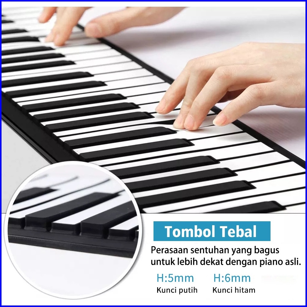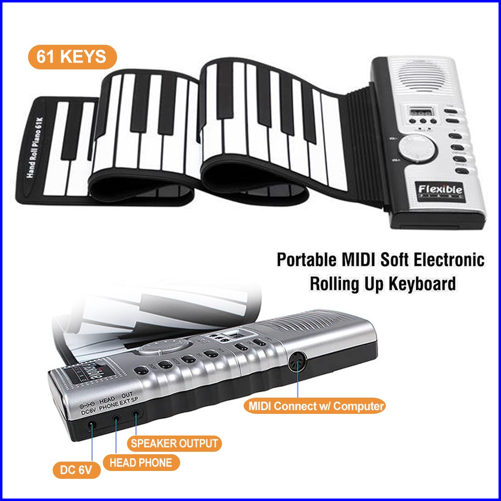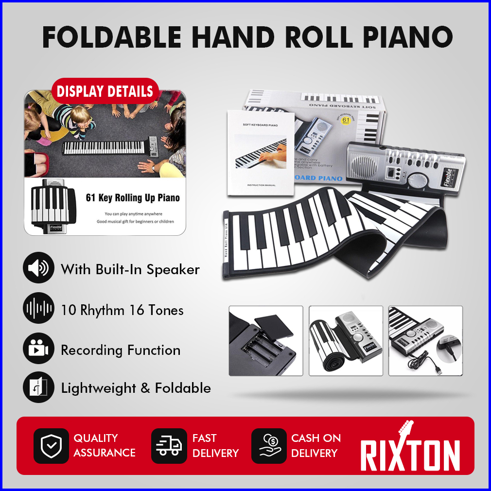 Rixton 61 Keys Hand Rolled Piano With Horn Organ Elektronik Lipat Silikon Portabel Untuk Anak-anak Pemula