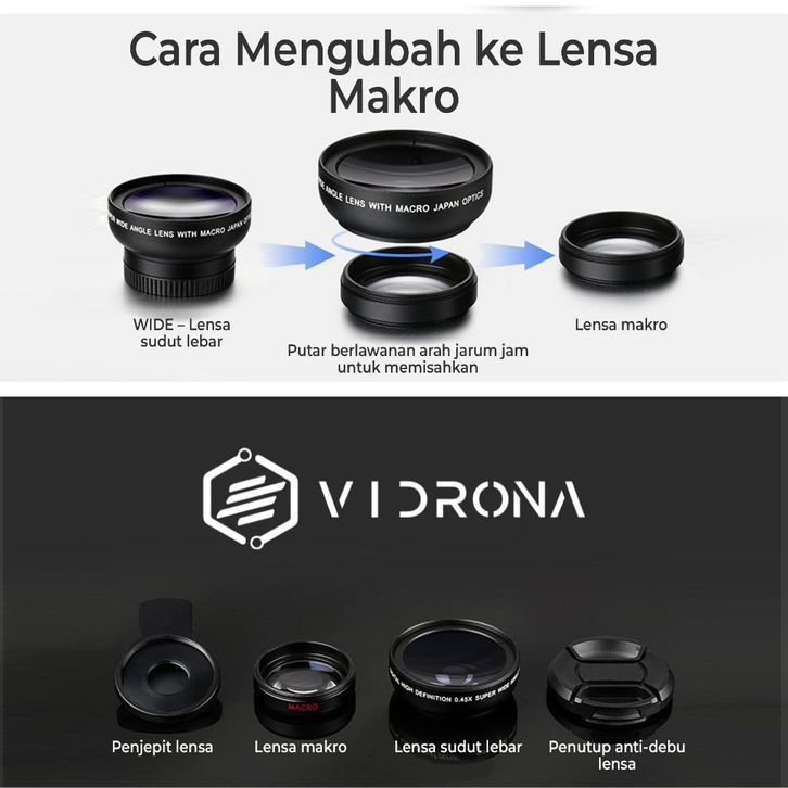 VIDRONA ELK-122 Lensa Super Wide Angle 12.5X Macro Kamera HP dengan Klip untuk Handphone Smartphone