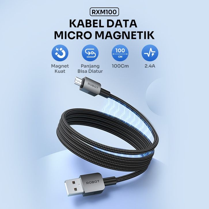 ROBOT Kabel Data Magnetik Fast Charging 65W Kabel Charger Type C Lightning Anti Kusut 1M RXM100/RXC100/RXL100/RXCC100/R