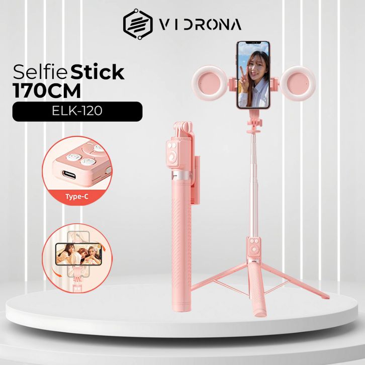 VIDRONA ELK-120 Selfie Stick 170cm Tongsis TriP00D Bluetooth Remote Lampu LED Vlog Live Streaming