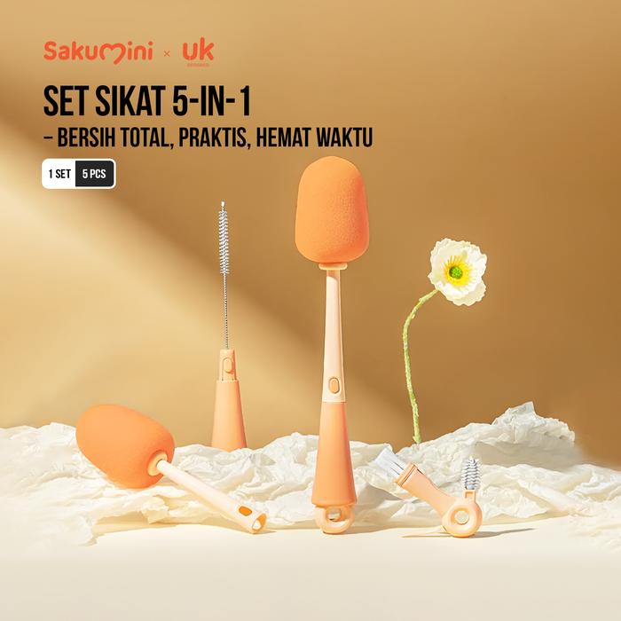 Sakumini 5in1 Brush Set Multifungsi Sikat Pembersih Botol Susu Dot Bayi - Oranye 5pcs