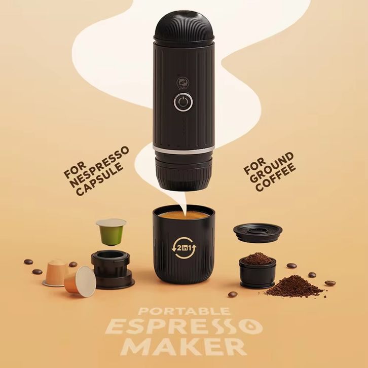 Nanopresso Coffee Maker Ground Portable 2in1 7500mAh 19 Bar 80ml iCafilas Stainless Steel ME2218 Black