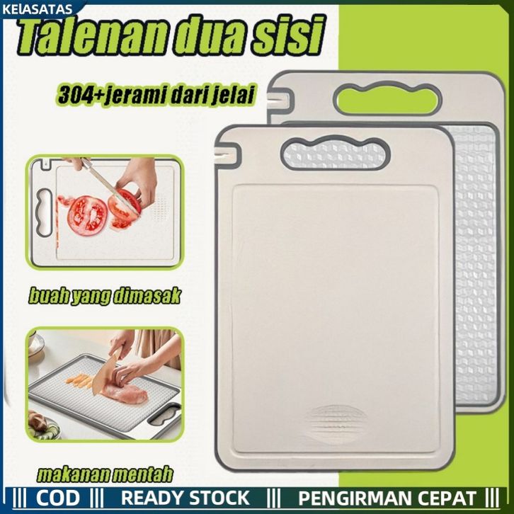 TERLARIS 【KElASATAS】Double Sided Cutting Board / Talenan Stainless 2 Sisi / Jerami Chopping Board Multifungsi