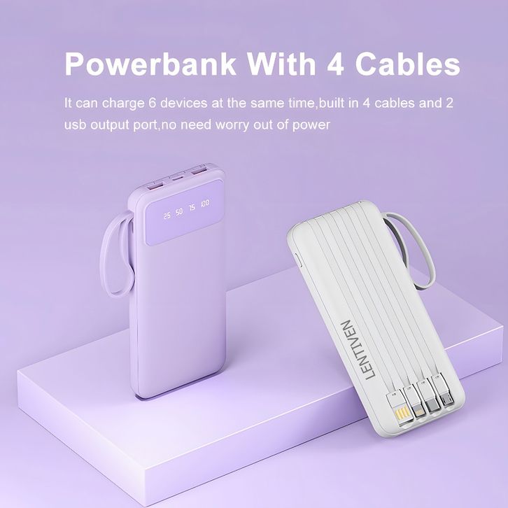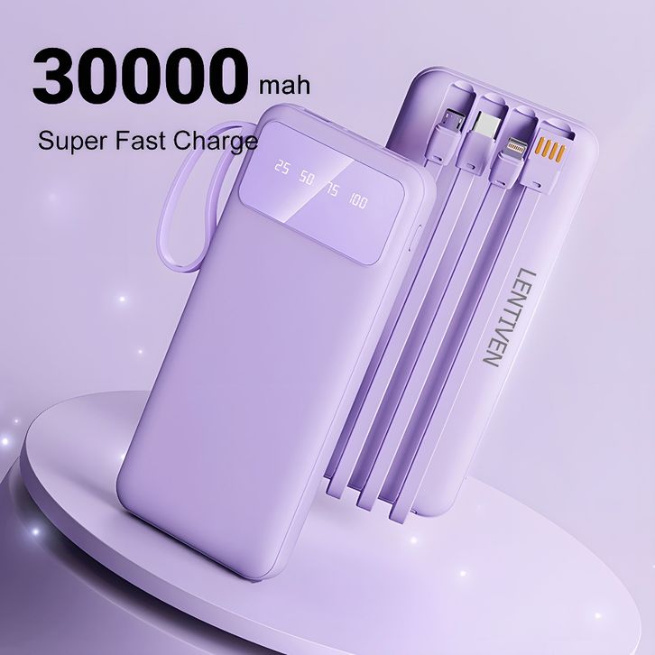 WANKEI LENTIVEN 30000mAh Powerbank Mini Fast Charging 4 KABEL Lightning & Type C For Iphone/Android BH356