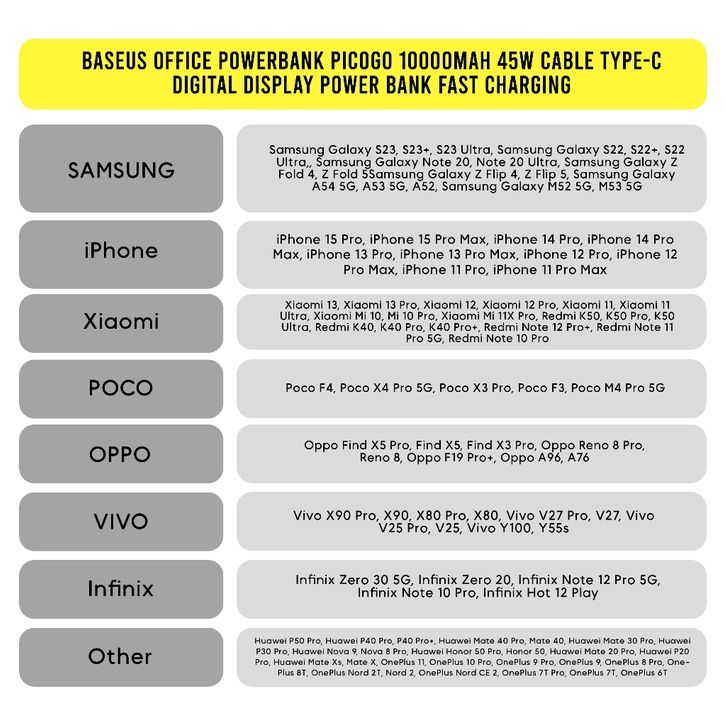 Baseus Powerbank PI-COGo 10000mAh 45W Cable Type-C Digital Display Power Bank Fast Charging