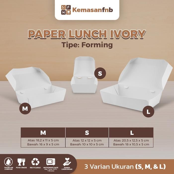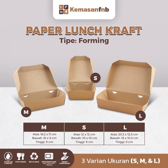 Paper Lunch Box & Paper Tray Kertas Kraft/ Ivory Ukuran S M L - Forming Kraft S