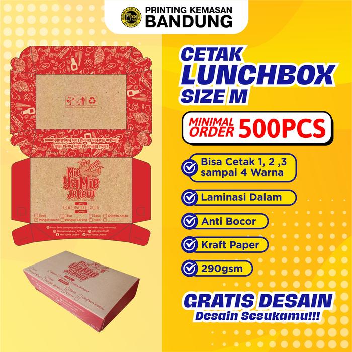 Lunch Box Size M 290gr Custom Cetak Kotak Makan Kertas Brown Paper Box Makanan Dus Kraft Craft - 1 warna 500 pcs